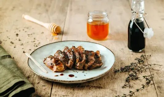 Tranches de filet de canard caramélisées au vinaigre balsamique