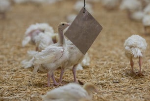 Nous élevons nos dindes sans traitement antibiotique, dans le respect du bien-être animal : avec plus d’espace* pour courir et s’ébattre dans un poulailler tempéré.