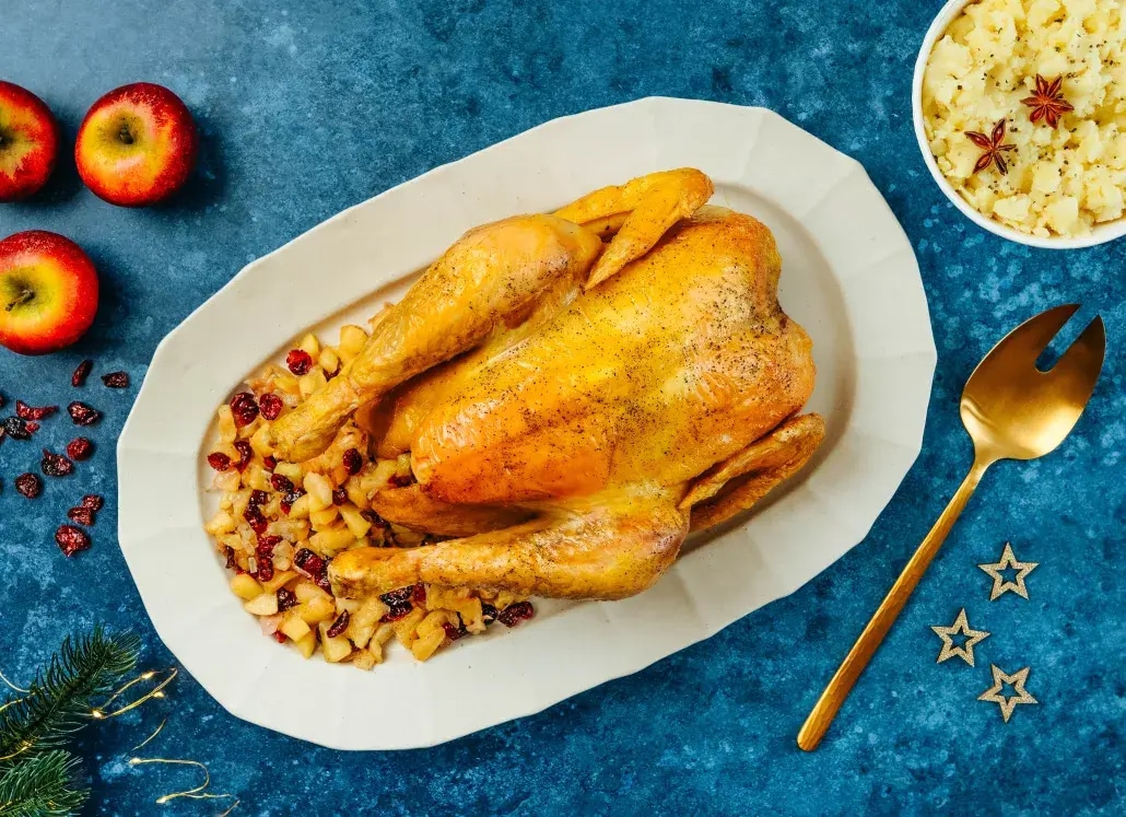 Nos volailles festives en élevage responsable sont nourries avec une alimentation 100% végétaux, minéraux et vitamines. Nos Chapons et nos Poulardes ont une alimentation composée de céréales Françaises.
