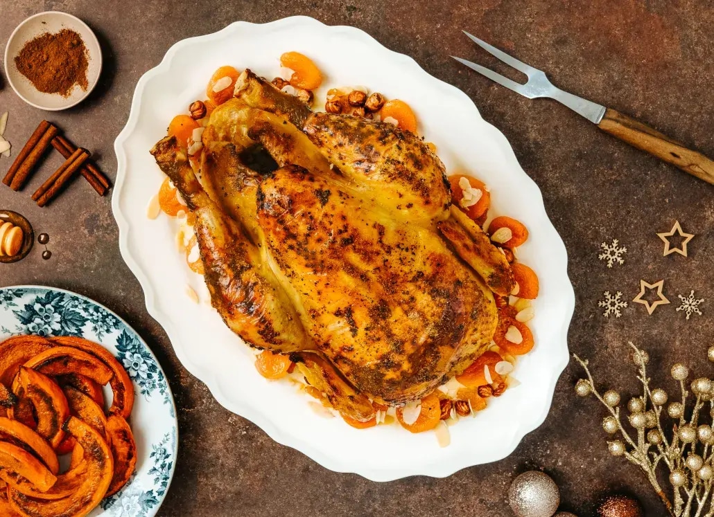 - Saler et poivrer l’intérieur du chapon, puis le garnir avec la farce. Refermer l’ouverture avec des cure-dents ou de la ficelle de cuisine.