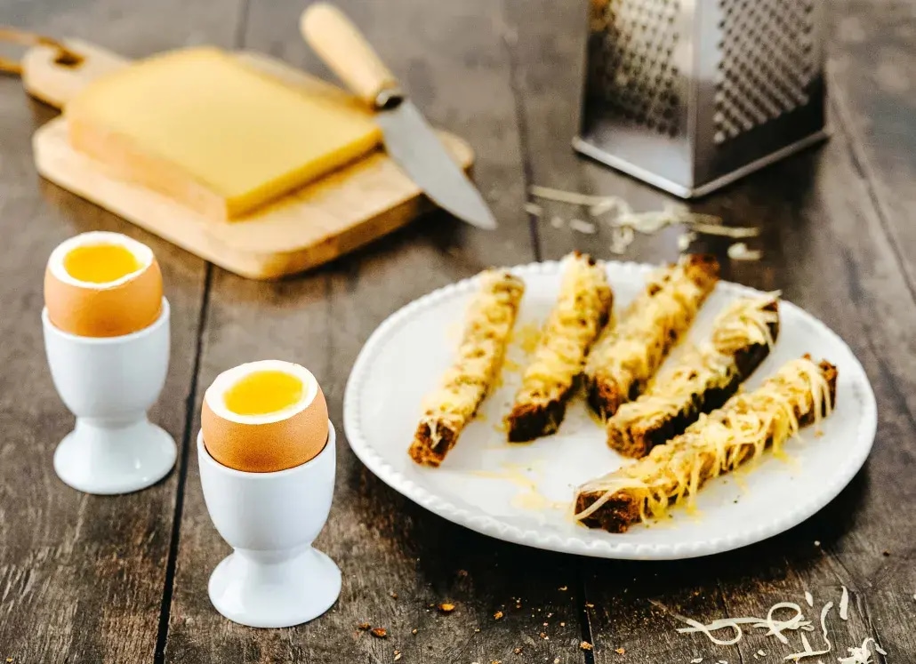 - Servir les œufs à la coque avec les mouillettes gratinées bien chaudes.