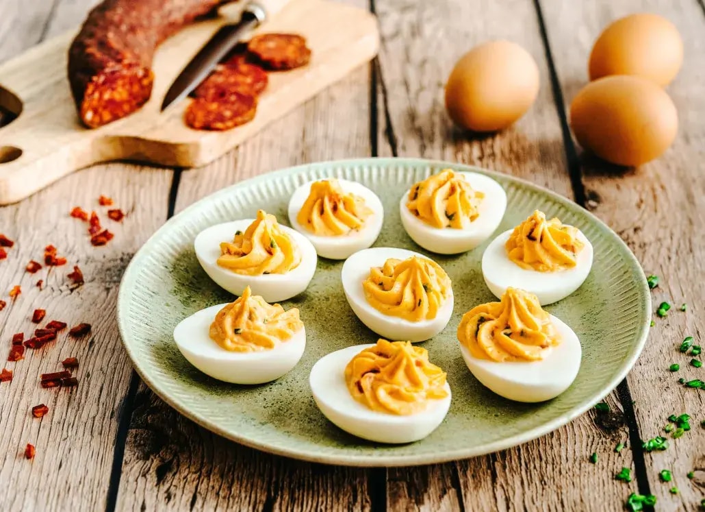 Le goût du chorizo relevé dans un œuf farci crémeux : un apéro qui réveille les papilles.