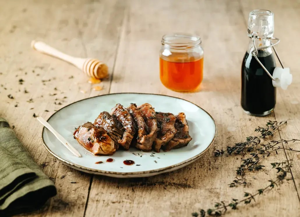 Tranches de filet de canard caramélisées au vinaigre balsamique : une touche sucrée-salée pleine de finesse.