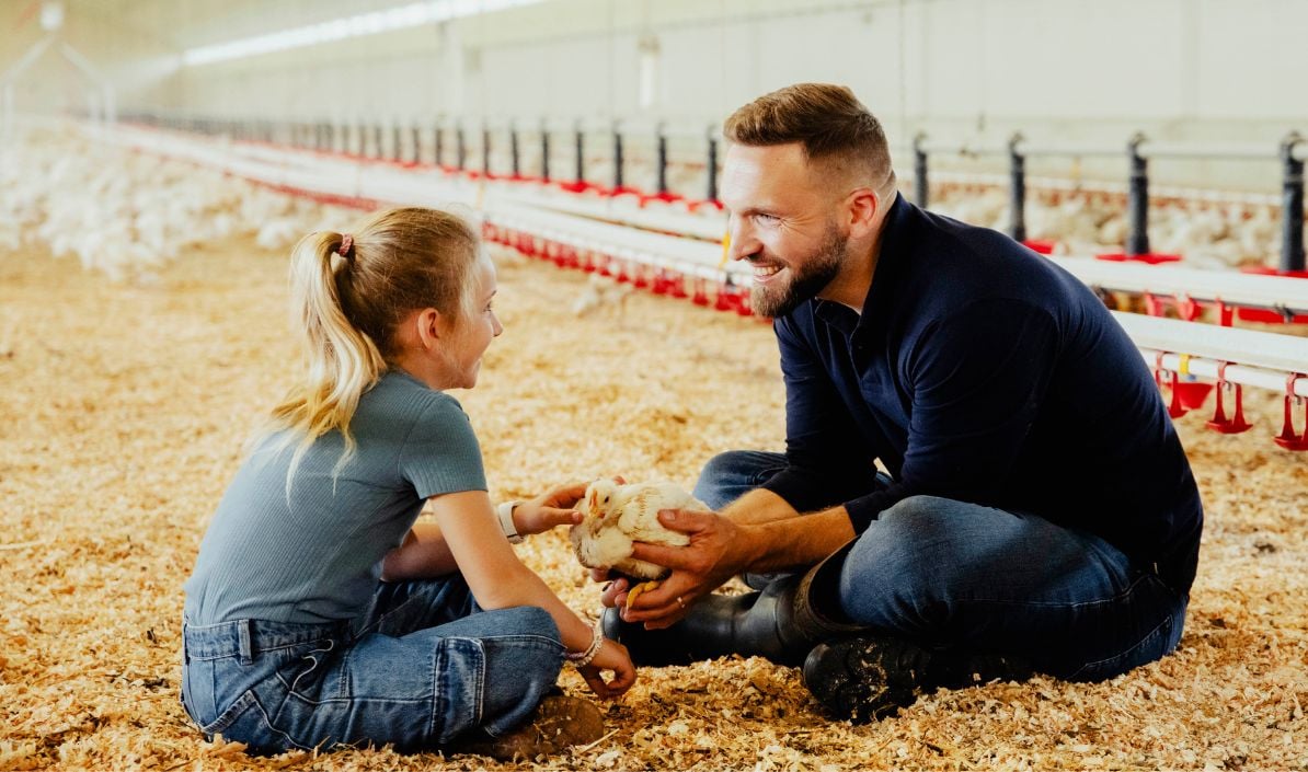 Thibault, éleveur de volailles à Louin (79) et sa fille