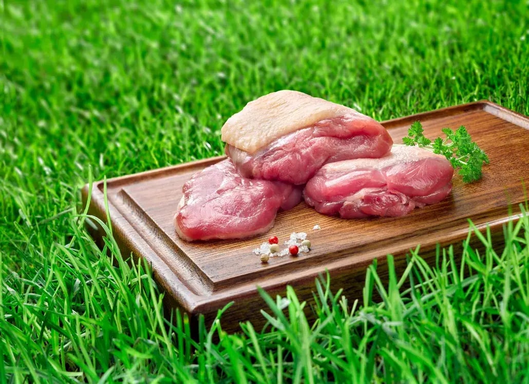 Nos canards bénéficient de plus d'espace pour courir et s'ébattre. Ils profitent également d'un aménagement des poulaillers avec des objets d'interaction et des pipettes têtes plongeantes pour leur permettre d'exprimer leur comportement naturel. Nos canards ne sont pas gavés et ont un libre accès la nourriture et l'eau.