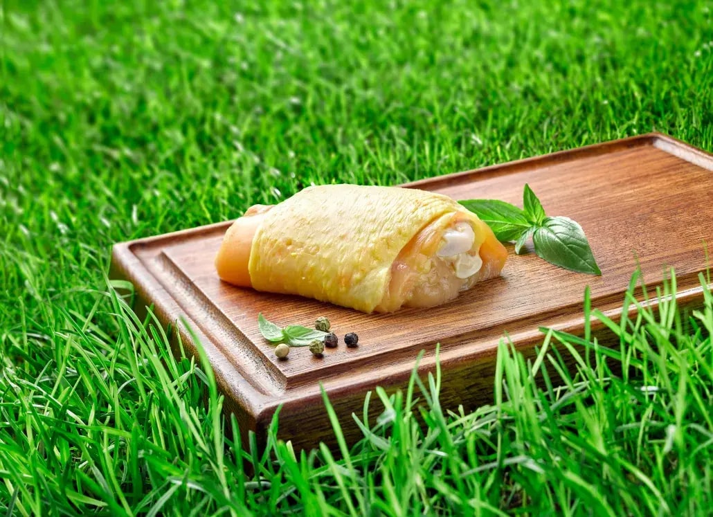 Bien élevés et bien nourris, nos poulets bénéficient d'une alimentation diversifiée selon le cahier des charges Bleu-Blanc-Cœur qui garantie une viande de qualité tout en favorisant la biodiversité des cultures dans les champs