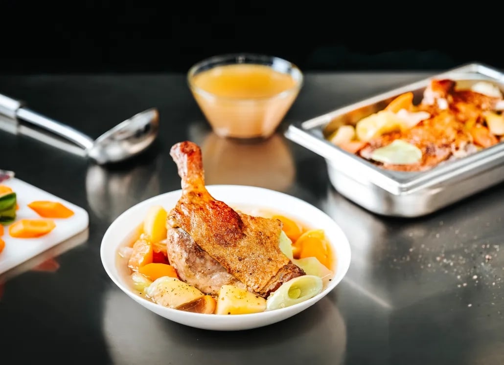 Un pot‑au‑feu de cuisse de canard, riche en saveurs et en légumes, qui saura réconforter vos convives.